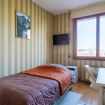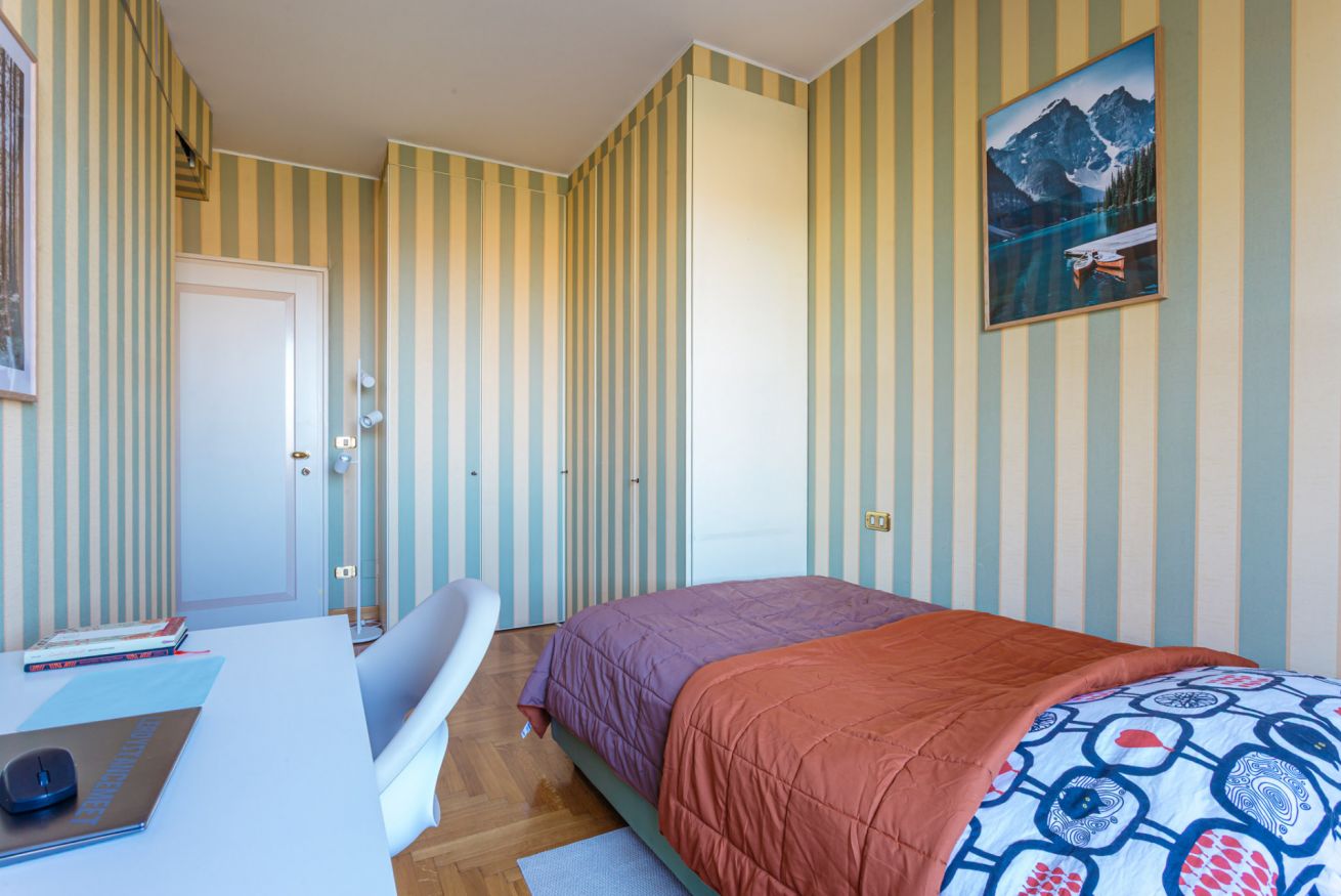 Si trova all'interno di un appartamento in condivisione, situato al quarto piano. L’immobile si compone di salottino, cucina completamente accessoriata, piccoli elettrodomestici e stoviglie, due bagni ed altre due camere da letto. Dispone di connessione WiFi, lavatrice e riscaldamento centralizzato. Il condominio, inoltre, dispone di portineria e di doppio ascensore.